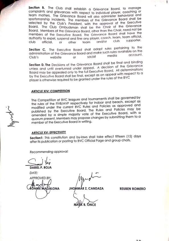Section1: This constitution and by-laws shall take effect fifteen (15) days after its publication or posting to BVC Official Page and group chats.